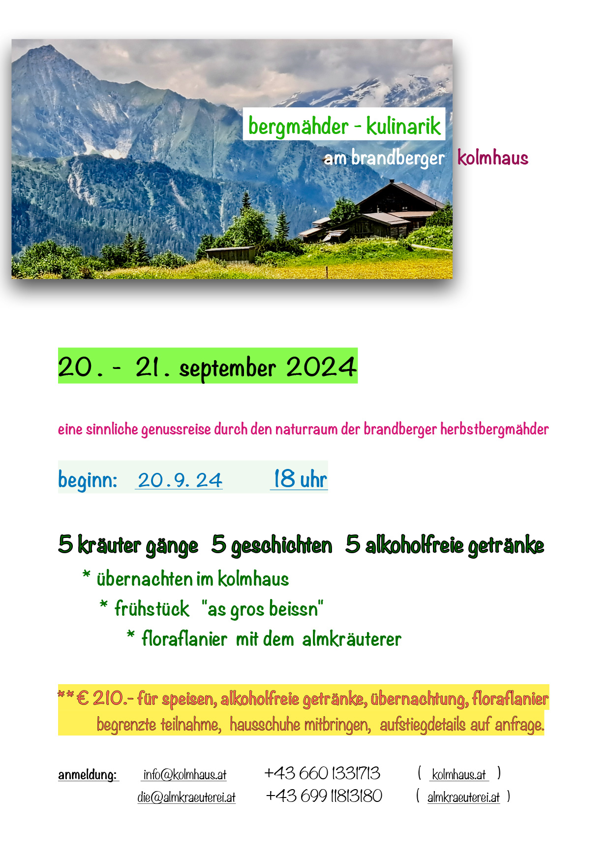 Bergmähder culinary delights at the Brandberger Kolmhaus September 20-21, 2024