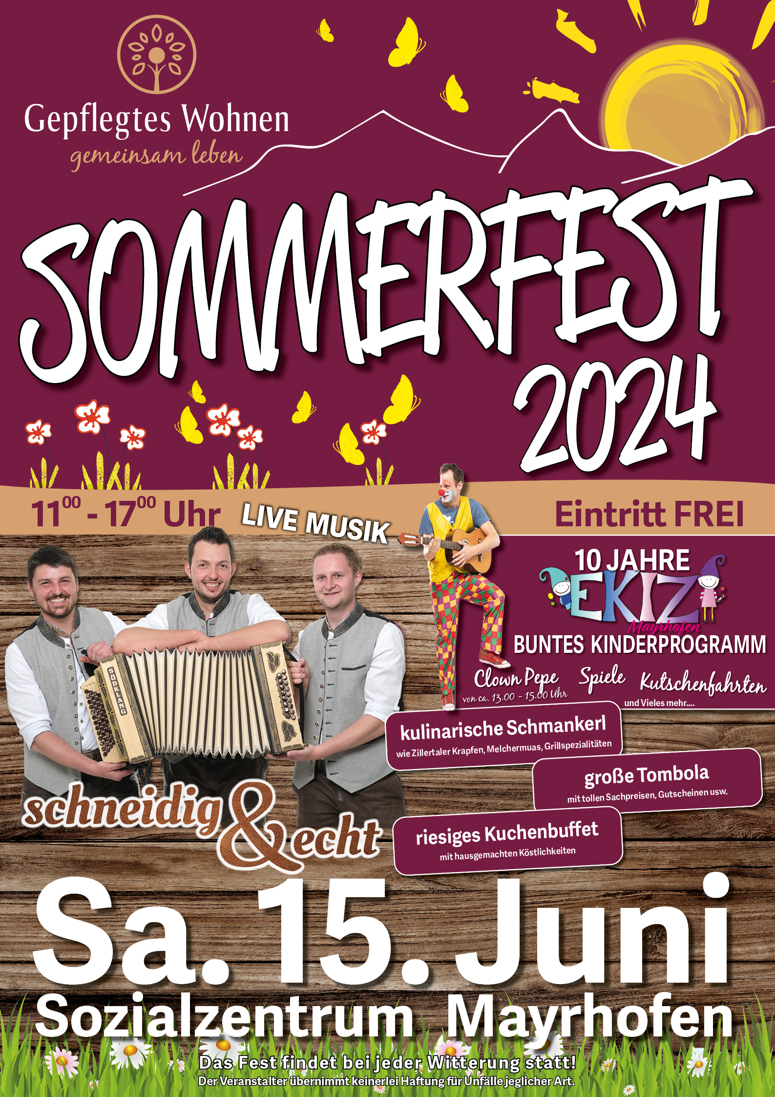 Assisted living invites you to the big “SUMMER FESTIVAL” at the Mayrhofen Social Center.